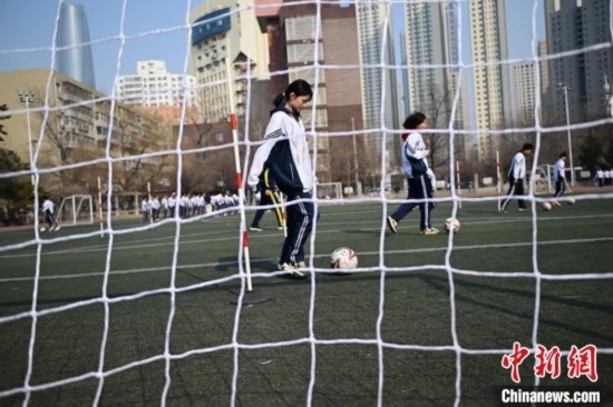 圖為沈陽市第一三四中學(xué)濱河路分校學(xué)生在上體育課。中新網(wǎng)記者 于海洋 攝