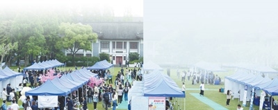 復(fù)旦大學(xué)開展生涯服務(wù)集市活動,促進人才供需對接。岑丹峰攝