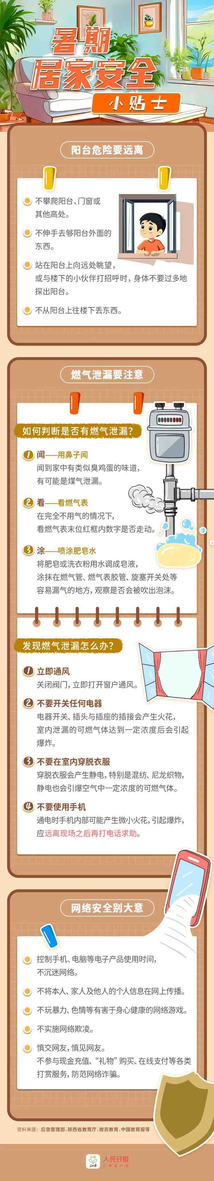 家是溫馨地,安全要牢記。暑假接近尾聲,防險切莫大意。速速領(lǐng)取這份居家安全小貼士,和所有的隱患說拜拜,做全家安全的“守護者”!