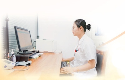 盛思敏將測量數(shù)據(jù)上傳系統(tǒng)。以上圖片均為本報記者孫超攝