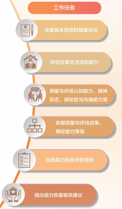 隨著老齡化進程加快,開展老年人能力評估,成為許多養(yǎng)老服務(wù)相關(guān)工作的一個基礎(chǔ)環(huán)節(jié)。“老年人需要全面了解自己的能力,養(yǎng)老機構(gòu)根據(jù)能力評估制定照護方案,政府根據(jù)照護等級確定補助標(biāo)準(zhǔn),推廣普及長期護理險以失能等級評估為依據(jù)……養(yǎng)老服務(wù)工作方方面面都需要對老年人進行能力評估。”盛思敏說。