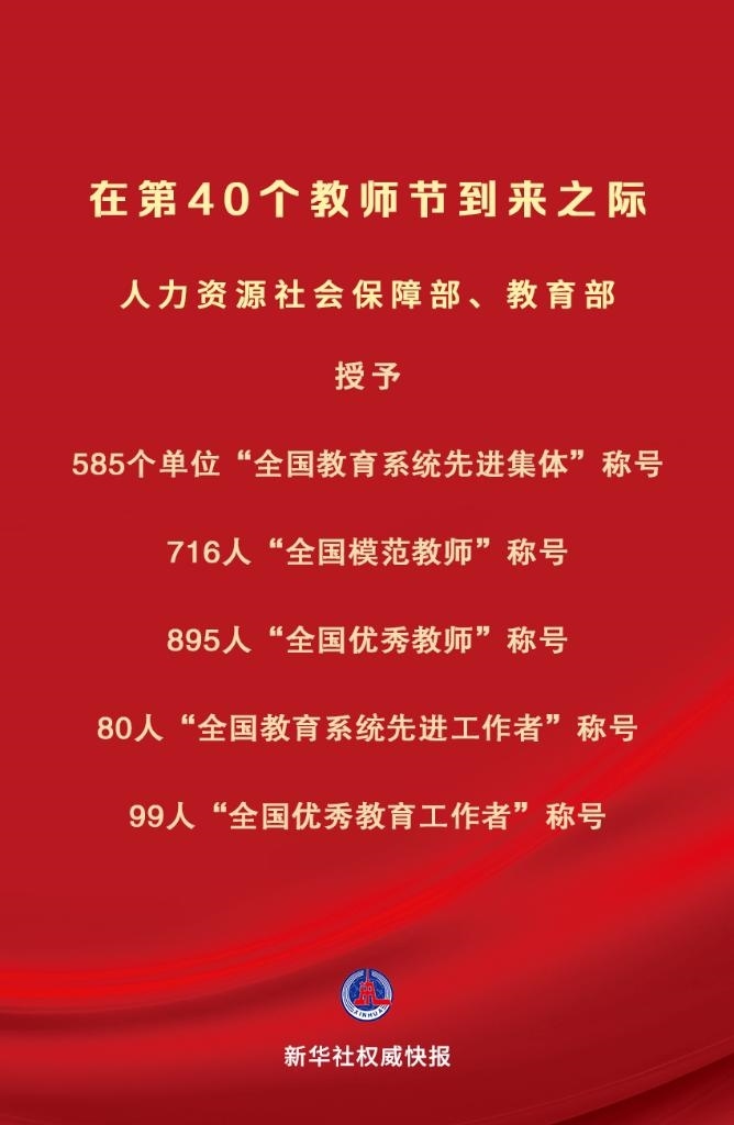 慶祝第40個教師節(jié)暨全國教育系統(tǒng)先進集體和先進個人表彰活動9月8日在京舉行。