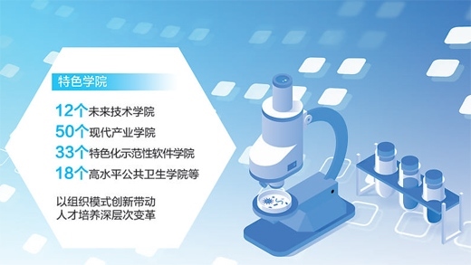 高東鋒:新時代以來,高等教育戰(zhàn)線積極服務(wù)國家戰(zhàn)略需要,體系化推進(jìn)新工科、新醫(yī)科、新農(nóng)科、新文科建設(shè),在教育教學(xué)的組織模式、培養(yǎng)機(jī)制、內(nèi)容方法、理論實(shí)踐等方面持續(xù)深化改革。聚焦戰(zhàn)略性新興領(lǐng)域和急需領(lǐng)域,布局建設(shè)了12個未來技術(shù)學(xué)院、50個現(xiàn)代產(chǎn)業(yè)學(xué)院、33個特色化示范性軟件學(xué)院、18個高水平公共衛(wèi)生學(xué)院等特色學(xué)院,分批布局45個國家產(chǎn)教融合創(chuàng)新平臺,有針對性、有組織地開展人才培養(yǎng),取得積極進(jìn)展,牽引帶動高等教育的全方位、全過程、全要素改革。