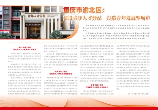 青年因城市而聚,城市因青年而興。渝北區(qū)認(rèn)真踐行青年優(yōu)先發(fā)展理念,以青年多樣化、多層次的發(fā)展需求為引導(dǎo),不斷優(yōu)化政策環(huán)境和社會(huì)環(huán)境,積極打造政策“特惠”、服務(wù)“特優(yōu)”、平臺(tái)“特設(shè)”的青年人才驛站,推動(dòng)青年發(fā)展與城市發(fā)展同向而行、同頻共振。
