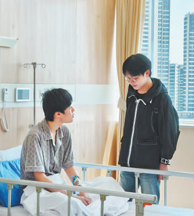 參加補(bǔ)考后,姜昭鵬的腳步格外輕快?!鞍l(fā)揮還可以。我是帶著大家的期待走進(jìn)考場的,這對我來說有著特殊的意義?!笨纪暝?,姜昭鵬馬上去探望同學(xué),兩人見面,相視而笑?!拔覀兗s好了,等他康復(fù),找地方吃頓飯?!苯样i說。