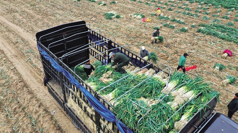 深秋時節(jié),通遼市奈曼旗沙日浩來鎮(zhèn)水泉嘎查大蔥種植基地一派繁忙的豐收景象,人們井然有序地拔蔥、捆綁、裝車,臉上洋溢著豐收的喜悅。