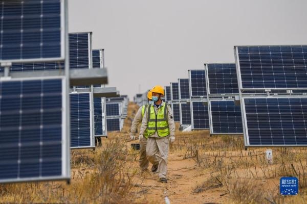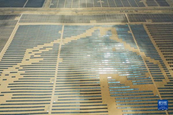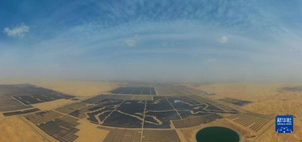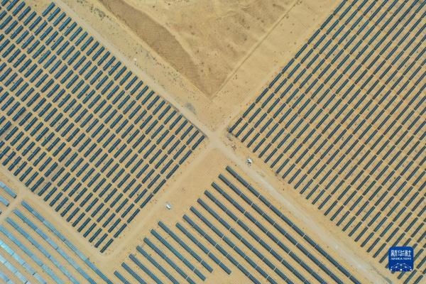 一匹占地130多萬平方米的沙漠“駿馬”橫臥在內(nèi)蒙古自治區(qū)庫布其沙漠之中,這是位于達拉特光伏發(fā)電應用領(lǐng)跑基地中、由近20萬塊光伏板組成的“駿馬電站”。該電站采用“林光互補”模式,板上發(fā)電、板下種植,在開發(fā)利用庫布其沙漠豐富太陽能資源的同時,推動沙漠生態(tài)治理。