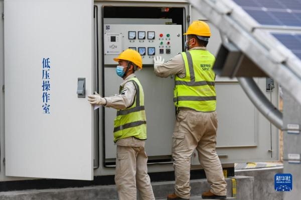 4月20日,工作人員在達拉特光伏發(fā)電應用領(lǐng)跑基地巡檢。新華社記者 王澤聰 攝