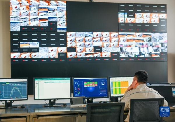 4月20日,在達拉特光伏發(fā)電應用領(lǐng)跑基地,工作人員在運維中心主控室工作。新華社記者 王澤聰 攝