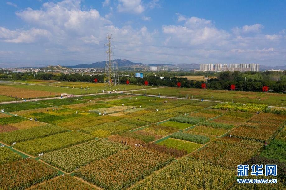 這是9月22日拍攝的位于山西省忻州市忻府區(qū)小檀村的雜糧科技展示園(無人機(jī)照片)。新華社記者 楊晨光 攝