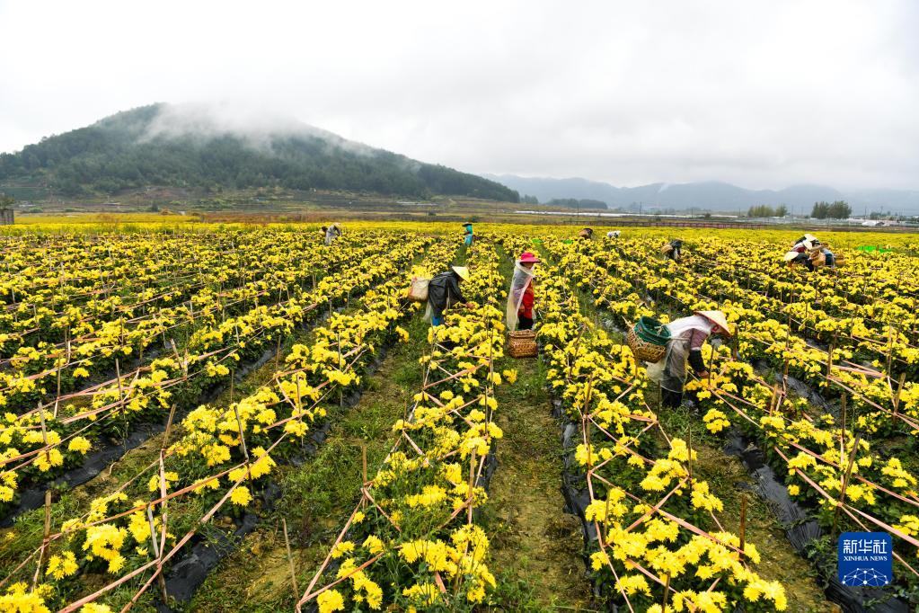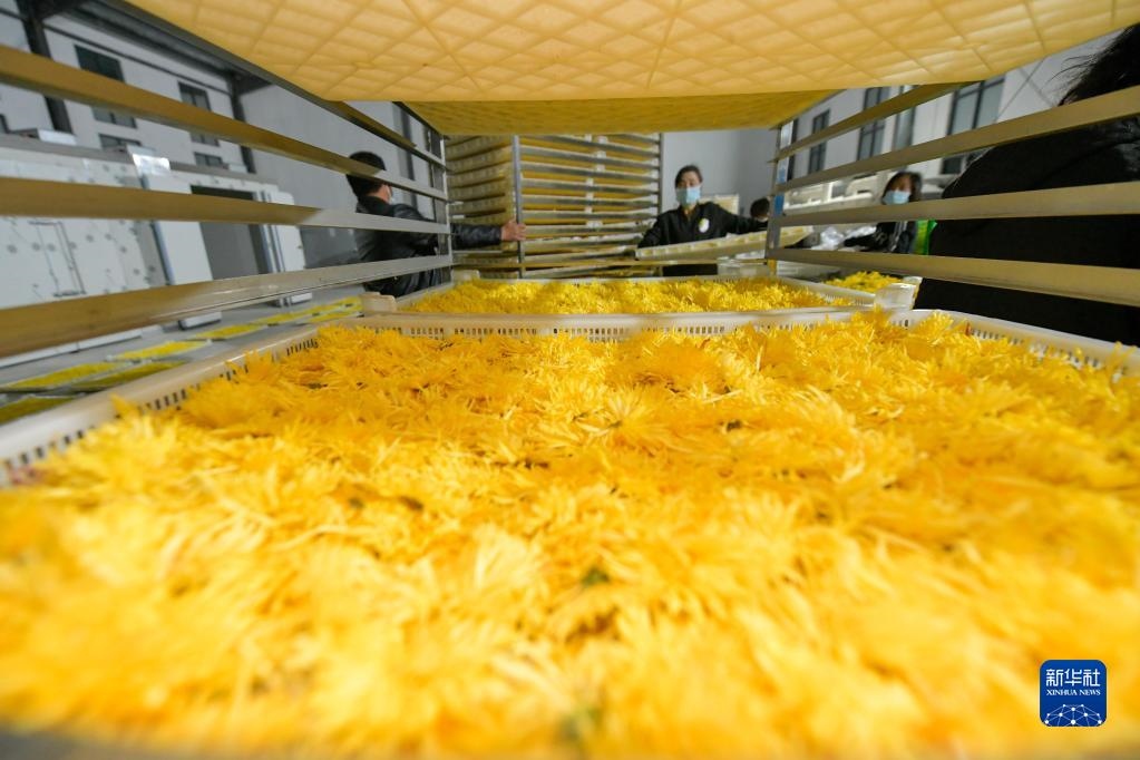 金秋時(shí)節(jié),貴州省黔南布依族苗族自治州貴定縣云霧鎮(zhèn)種植的1000余畝菊花陸續(xù)進(jìn)入采摘期,當(dāng)?shù)卮迕衩χ烧?、分揀、烘干菊花,供?yīng)市場(chǎng)。