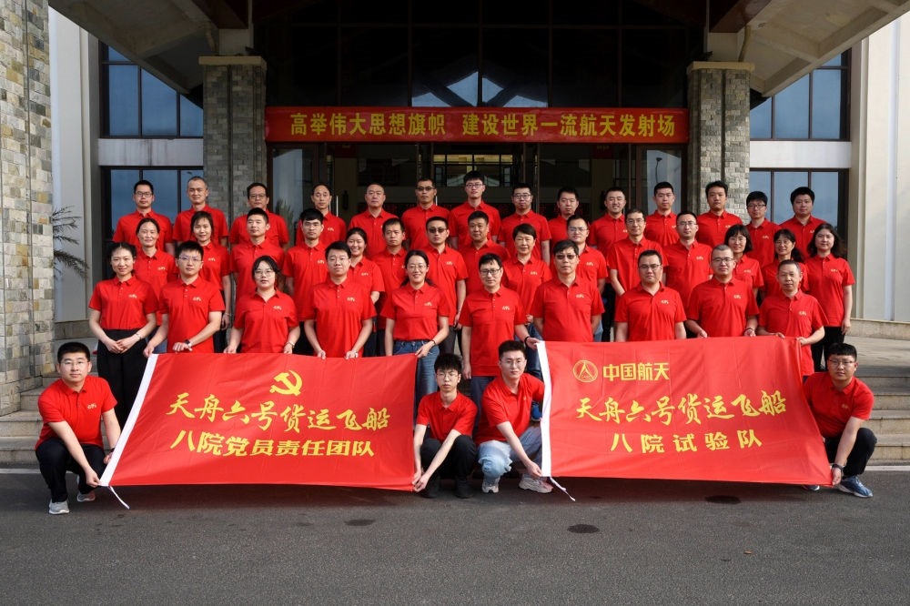 天舟六號(hào)貨運(yùn)飛船八院試驗(yàn)隊(duì)合影。(中國(guó)航天科技集團(tuán)八院供圖)