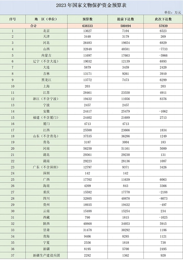 2023年國家文物保護(hù)資金預(yù)算表。圖片來源:財(cái)政部官網(wǎng)
