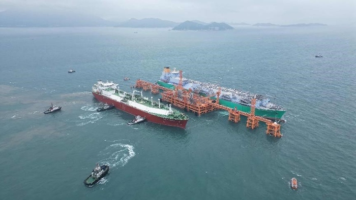 LNG運輸船靠泊到香港LNG接收站。周立健攝