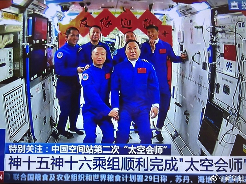 神舟十六號(hào)航天員順利進(jìn)駐中國空間站。兩個(gè)航天員乘組拍下“全家?!保餐驙繏焖麄兊娜珖嗣駡?bào)平安。后續(xù),兩個(gè)航天員乘組將在空間站進(jìn)行在軌輪換。(王逸濤、張瑞杰、韓啟揚(yáng))