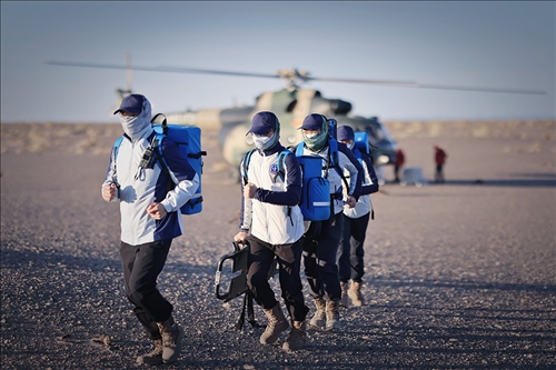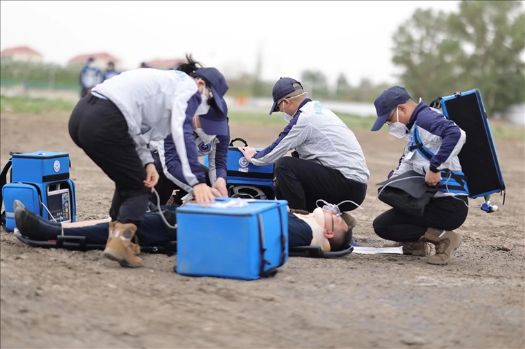 醫(yī)學(xué)急救“白金10分鐘、黃金1小時(shí)”,針對可能出現(xiàn)的飛船返回偏離落點(diǎn),落在沙漠、山地、湖泊,搜救直升機(jī)無法降落,車輛無法進(jìn)入的情況,為快速到達(dá)著陸地點(diǎn),醫(yī)療救護(hù)隊(duì)員每天隨身攜帶艙前急救設(shè)備堅(jiān)持訓(xùn)練六七個小時(shí),負(fù)重在沙漠、山地中奔跑,爭取最短時(shí)間展開緊急救治。夏日戈壁驕陽似火,風(fēng)沙彌漫,訓(xùn)練一天下來,隊(duì)員們耳朵眼里都是沙土,臉上脖子全是泥印,一個個都成了泥人。茫茫大草原記錄了神舟載人飛行任務(wù)醫(yī)療隊(duì)員們一次次醫(yī)療救護(hù)空地協(xié)同演練、全域協(xié)同演練的身影……
