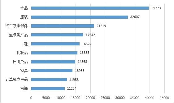 圖4商品細(xì)分領(lǐng)域投訴前十位(單位:件)