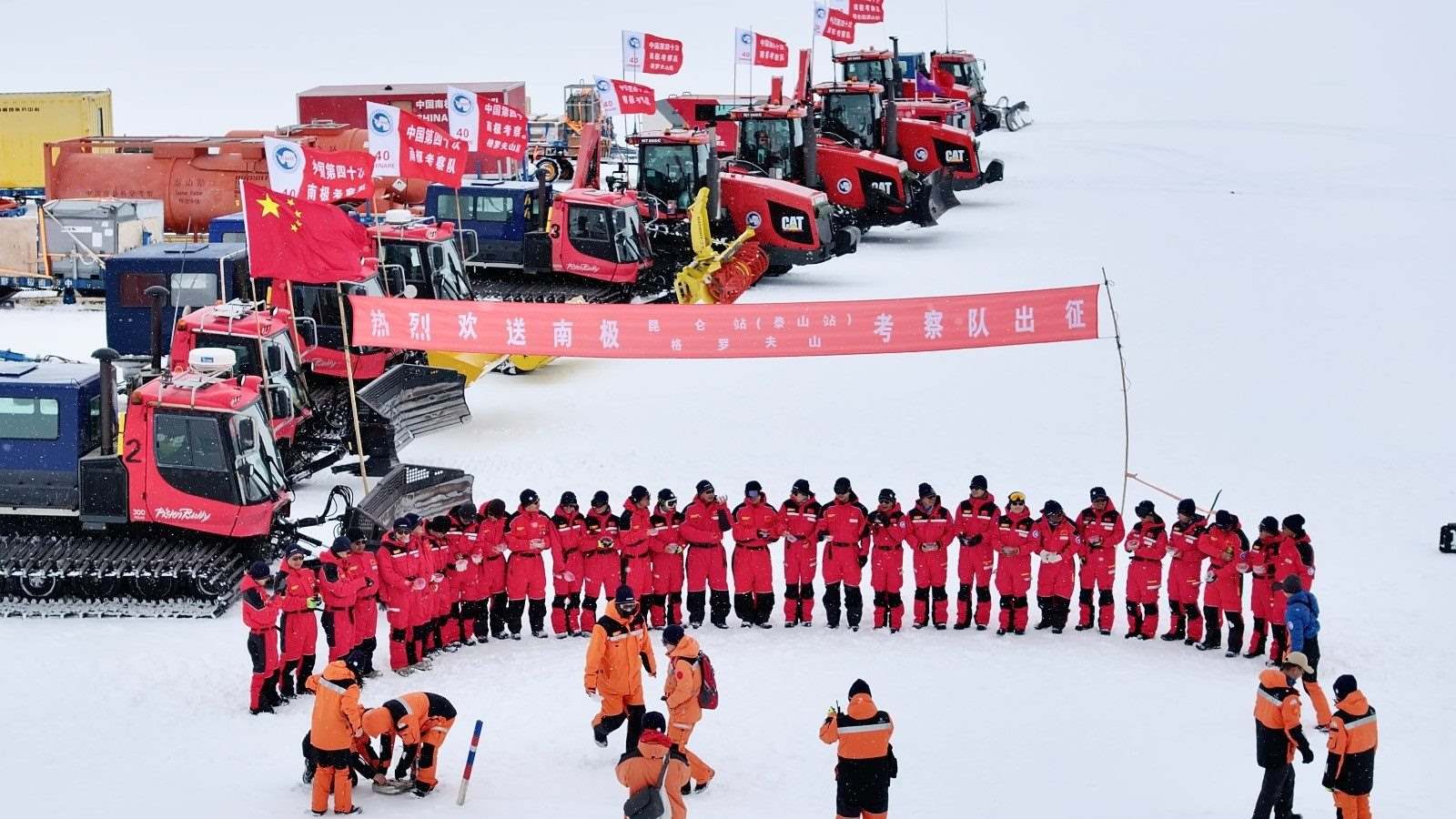 本次內(nèi)陸隊包括昆侖站(泰山站)隊和格羅夫山隊。其中昆侖站(泰山站)隊由20名隊員組成,他們將途徑泰山站,抵達位于南極冰蓋最高點、海拔4087米的昆侖站,開展冰川學(xué)、天文學(xué)、地質(zhì)學(xué)、地球物理學(xué)等科學(xué)考察。格羅夫山隊由9名隊員組成,他們將行進460余千米,前往平均海拔超過2000米的格羅夫山地區(qū)開展地質(zhì)調(diào)查、冰芯鉆探、隕石搜尋等科學(xué)考察。