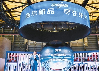 2024年中國(guó)家電及消費(fèi)電子博覽會(huì)現(xiàn)場(chǎng),京東攜手海爾等品牌首發(fā)數(shù)十款家電新品。受訪(fǎng)者供圖