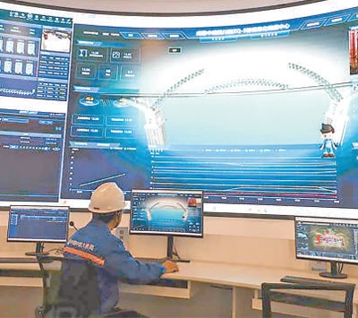 馬天亮把手指向了施工項(xiàng)目部大屏幕上的智能溫控系統(tǒng),混凝土溫度、流量等參數(shù)依次展示。“內(nèi)部混凝土溫度過高,增加冷卻水管通水流量?!眰鞲衅鞅O(jiān)測到混凝土溫度異常后,智能溫控系統(tǒng)自主啟動對冷卻水管通水時(shí)長和流量的調(diào)節(jié)。