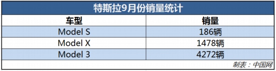 從單月成績(jī)來看,9月份,隨著特斯拉Model 3進(jìn)口量的增加,特斯拉在該月進(jìn)口數(shù)量約為0.43萬(wàn)輛新車,同比大幅增長(zhǎng)近287%。伴隨進(jìn)口量的增加,特斯拉在國(guó)內(nèi)的銷量也有突出表現(xiàn),根據(jù)乘聯(lián)會(huì)9月份數(shù)據(jù)統(tǒng)計(jì),特斯拉Model S的銷量為186輛;Model X的銷量為1478輛;Model 3的銷量為4272輛。詳情見下表: