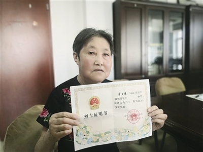 6月初,74歲的赫雅菊老人來(lái)到《北方新報(bào)》記者部,手里拎著一個(gè)裝滿了材料、身份證件等物品的口袋。她說(shuō),想讓記者幫忙找找父親唐玉德烈士的下落。1983年民政部發(fā)的革命烈士證書寫著:唐玉德烈士出生于1927年12月,沈陽(yáng)白塔鋪桃山屯人,1948年11月參加革命,1950年入黨,1952年6月?tīng)奚诔r戰(zhàn)場(chǎng),生前任7師20團(tuán)擔(dān)架連排長(zhǎng)。
