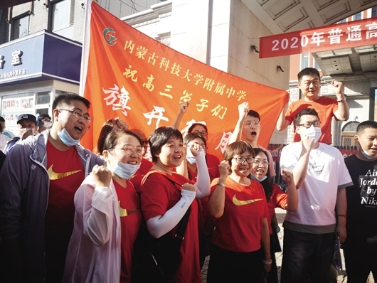 為學(xué)生送考是包四中的傳統(tǒng)。當(dāng)日7時(shí)許,身著“包四必勝”紅色T恤的高三年級(jí)組長楊文亮早早來到考場為學(xué)生送考。這名任教20年的教師已經(jīng)歷過6次高考,每一次他都要親自將學(xué)生送上考場。與他同來的十幾名包四中教師或與學(xué)生擊掌,或向他們打著必勝的手勢(shì),激勵(lì)大家沉著應(yīng)考,考出水平。楊文亮說:“在每場考試結(jié)束前,老師們都會(huì)提前來到現(xiàn)場,等著同學(xué)們出來,給他們打氣,幫助他們調(diào)整情緒。有時(shí)學(xué)生會(huì)說考試題目比較難,這時(shí)老師們就會(huì)告訴學(xué)生不要過分焦慮,正常發(fā)揮出自己的實(shí)力就好,題難不是一人難,每名考生都會(huì)面對(duì)同樣的難題。通過這樣的交流為考生進(jìn)行心理疏導(dǎo),消除考生緊張焦慮的情緒,繼續(xù)為接下來的考試做好準(zhǔn)備?!保ú邉澸w永峰 記者李碩 霍曉霞 萬菲 實(shí)習(xí)生許昕元 通訊員李瞳)