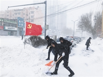 鐵路街道轄區(qū),12輛小鏟車(chē)、4輛大鏟車(chē)的發(fā)動(dòng)機(jī)滾燙,全體街居干部、物業(yè)公司、保潔大隊(duì),派出所和交警大隊(duì)等部門(mén)人員幾十人凍得手腳發(fā)麻也沒(méi)有放下手中的雪鏟,暴風(fēng)雪中,他們第一時(shí)間守在清雪保暢通的前沿陣地,“我們的目標(biāo)是‘雪停路凈’,一定要保障好群眾的安全出行。”