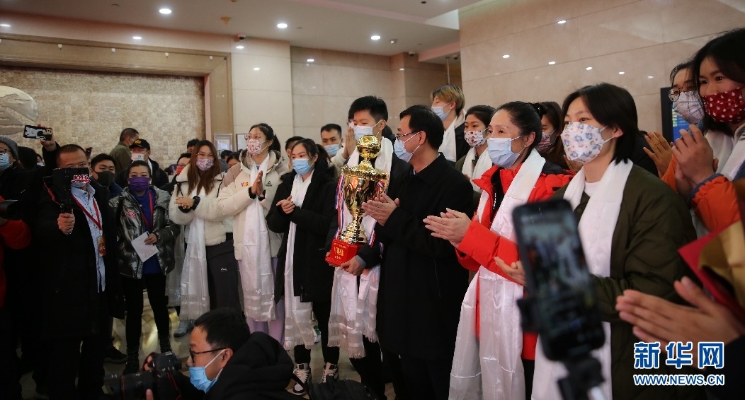 2022年1月3日晚,WCBA衛(wèi)冕總冠軍內(nèi)蒙古農(nóng)信女籃載譽歸來,在呼和浩特白塔國際機場受到球迷的熱烈歡迎。