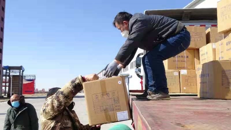 3月1日清晨,錫林郭勒盟至呼和浩特的后山地區(qū)飄著小雪,氣溫在零下10度以下,但是,風(fēng)雪擋不住來自錫林郭勒大草原的一片片愛。一輛17米帶掛卡車長驅(qū)千里十多小時,帶著錫林郭勒大草原的問候,連夜運輸?shù)胶艉秃铺兀粸樵琰c送達100萬只一次性醫(yī)用外科口罩。這輛卡車上掛著內(nèi)容為“祝青城人民早日戰(zhàn)勝疫情,錫盟公益助力呼和浩特市”和“洶洶疫情不可怕,齊心協(xié)力戰(zhàn)勝它”的條幅,表達“中國馬都”向“中國乳都”的真切問候。