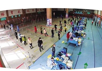 “從3月9日開始,呼和浩特全民健身中心乒羽網(wǎng)保館進行全面消殺,10日正式開始接種疫苗。配有大量志愿者現(xiàn)場維持秩序和引導(dǎo)市民有序接種,并針對一些特殊群體開辟了綠色通道,有效保證疫苗正常接種秩序?!焙艉秃铺厥腥窠∩矸?wù)中心黨支部副書記于首淼說。