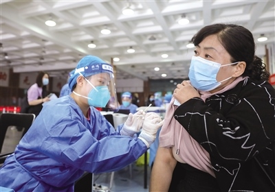 在接種臺前,醫(yī)護人員分工明確,核驗接種人群身份信息、詢問病史和疫苗接種情況,每個環(huán)節(jié)有條不紊地進行著。