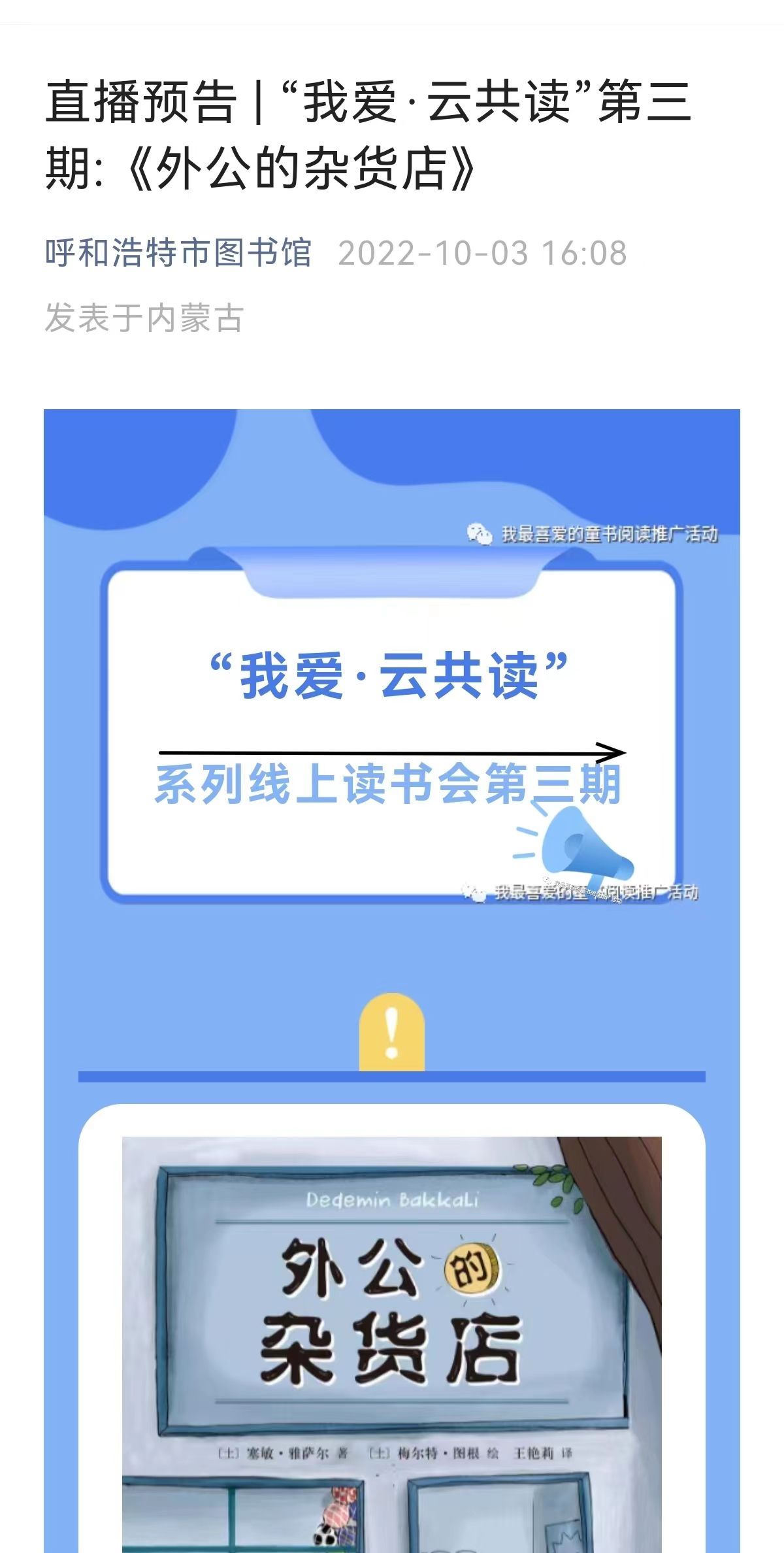 為豐富疫情期間人民群眾的精神文化生活,紓解封控隔離精神壓力,呼和浩特市圖書館還推出線上閱讀分享會(huì),涵蓋了圖書推薦、分享讀書心得、介紹本土傳統(tǒng)文化等內(nèi)容,滿足市民不同的精神文化需求。線上閱讀活動(dòng)開展以來,視頻累計(jì)點(diǎn)擊量超過13萬。