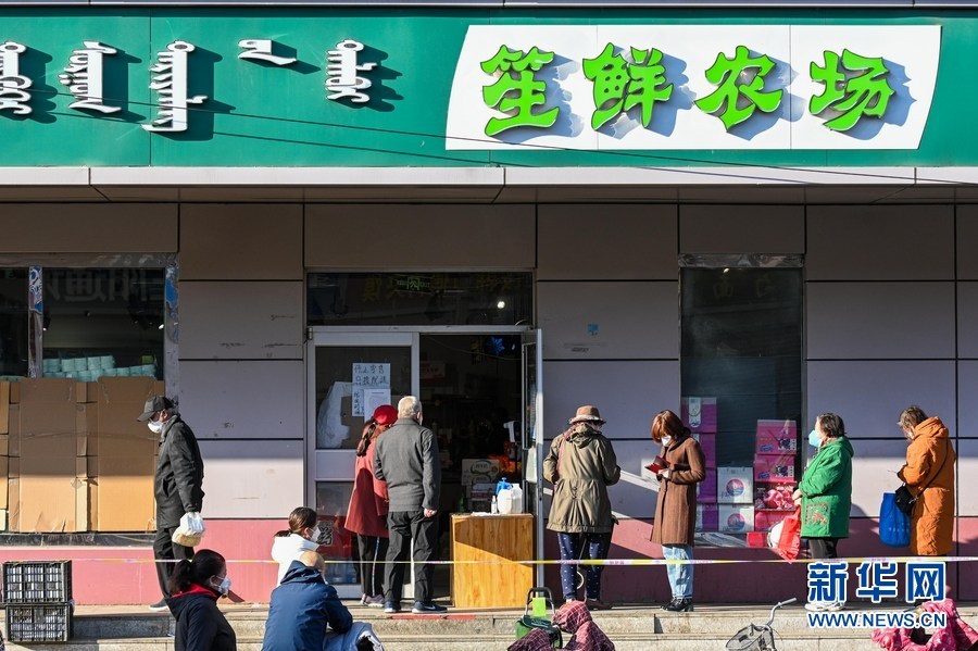 11月17日,市民在呼和浩特市新城區(qū)的商店排隊購物。新華社記者 王澤聰 攝