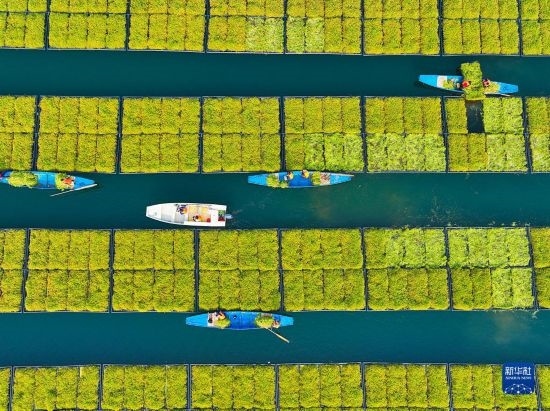 近年來,浙江省杭州市淳安縣在千島湖典型庫灣、入湖口等區(qū)域,積極運用生態(tài)浮島水上植物無土栽培技術(shù)種植空心菜、水芹菜等水生蔬菜,直接吸收庫區(qū)水體中氮磷等元素,從而能夠有效地降低水體中營養(yǎng)物質(zhì)的含量,提升水質(zhì)。近日,水生蔬菜進(jìn)入采收季節(jié),“湖上菜園”呈現(xiàn)春收繁忙景象。