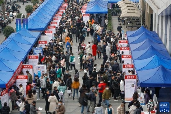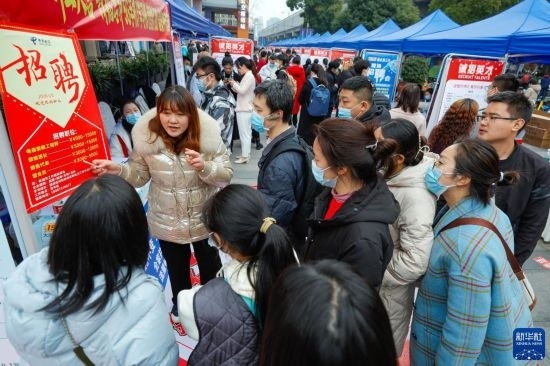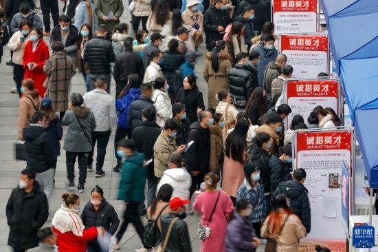 2月17日,人們?cè)谥袊?guó)成都人力資源服務(wù)產(chǎn)業(yè)園查看招聘信息,尋找工作機(jī)會(huì)。