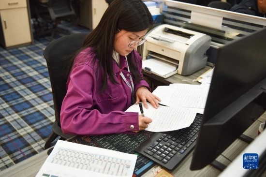 2月21日,在西寧市圣源地毯集團(tuán)有限公司設(shè)計(jì)銷售車間,一名藏毯設(shè)計(jì)師在繪制圖案。