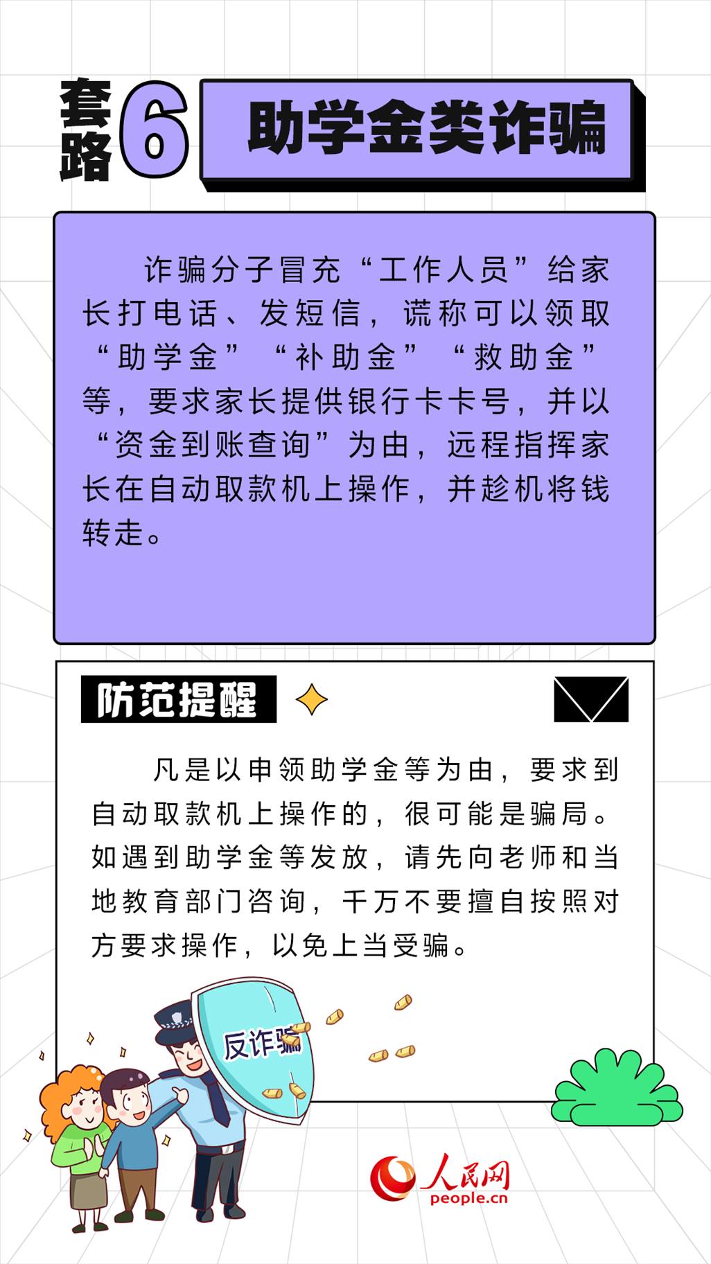 眼下正值開學(xué)季,學(xué)生們又開始了新學(xué)期的忙碌,殊不知詐騙分子也蠢蠢欲動,針對不同年齡段的學(xué)生“因人施騙”,令人防不勝防。人民網(wǎng)“求真”欄目整理了開學(xué)季六種常見的詐騙套路,提醒家長和學(xué)生注意防范。