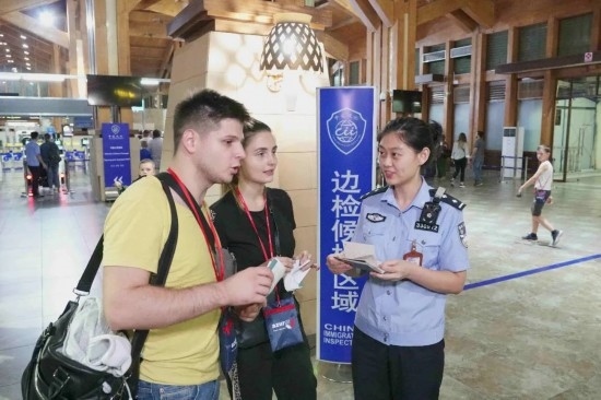 “免簽游客的入境停留時(shí)間從15天或者21天統(tǒng)一延長至30天……”入境大廳,王東玉正為游客耐心細(xì)致地講解著新政策的內(nèi)容。免簽政策實(shí)施初期,王東玉積極參與政策宣傳工作中,通過向旅客發(fā)放宣傳資料、現(xiàn)場答疑解問等多種形式,介紹59國人員入境海南旅游免簽相關(guān)政策和配套措施,不斷提升旅客滿意度。