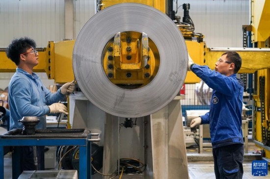 工人在位于太倉市高新區(qū)的威爾斯新材料(太倉)有限公司生產(chǎn)車間內(nèi)進(jìn)行加工作業(yè)(3月16日攝)。