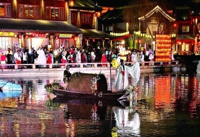 演員在河南省洛陽市洛邑古城內(nèi)為游客表演。新華社發(fā)