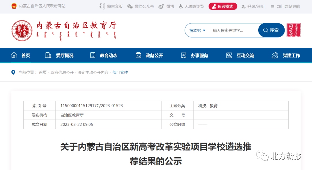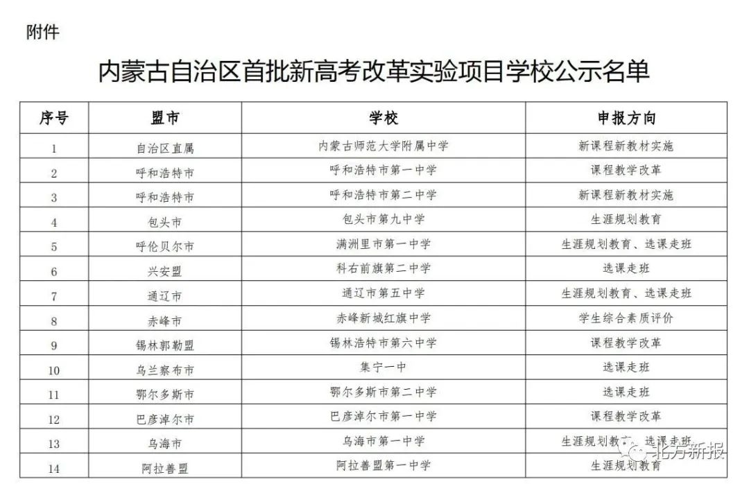 關(guān)于內(nèi)蒙古自治區(qū)新高考改革實(shí)驗(yàn)項(xiàng)目學(xué)校遴選推薦結(jié)果的公示