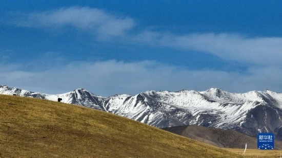 4月17日,在青海省海北藏族自治州門(mén)源回族自治縣皇城蒙古族鄉(xiāng),一群牦牛在祁連山腹地的草場(chǎng)上活動(dòng)。