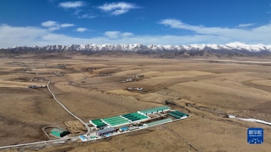 4月16日在青海省海北藏族自治州門(mén)源回族自治縣皇城蒙古族鄉(xiāng)拍攝的養(yǎng)殖畜棚(無(wú)人機(jī)照片)。