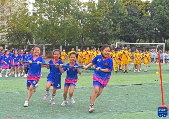 4月17日,孩子們?cè)趶V西南寧市濱湖路小學(xué)進(jìn)行民族體育比賽。