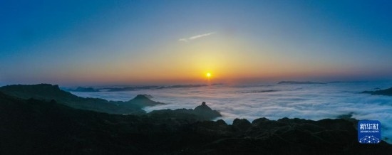 當(dāng)日,位于重慶市南川區(qū)的世界自然遺產(chǎn)地金佛山雨后放晴,山間升騰起的水汽匯聚成云海在山巒之間流淌,美不勝收。