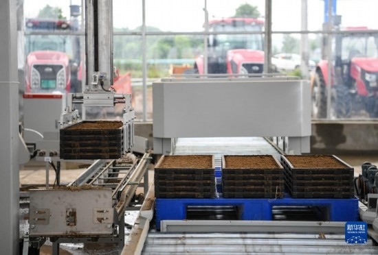 位于成都平原的四川省眉山市彭山區(qū),近年來(lái)加快建設(shè)數(shù)智水稻示范基地,通過(guò)引進(jìn)或定制循環(huán)式智能育秧機(jī)、智能水稻育秧播種流水線、秧盤(pán)智能傳輸帶等設(shè)備,提升春耕科技含量,提高生產(chǎn)效率。