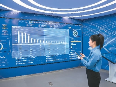 2月24日,在山東省東營(yíng)經(jīng)濟(jì)技術(shù)開(kāi)發(fā)區(qū)的東營(yíng)工業(yè)互聯(lián)網(wǎng)創(chuàng)新中心,碳排放管理員通過(guò)碳達(dá)峰大數(shù)據(jù)平臺(tái),查看和展示開(kāi)發(fā)區(qū)企業(yè)實(shí)時(shí)耗能情況。周廣學(xué)攝(人民視覺(jué))