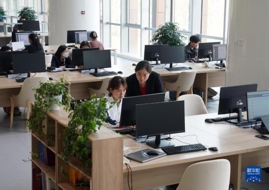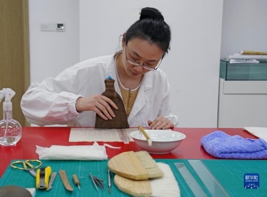 4月28日,在上海市檔案館的保護(hù)技術(shù)部,年輕的檔案修復(fù)師們?cè)诠ぷ髦小?/p>