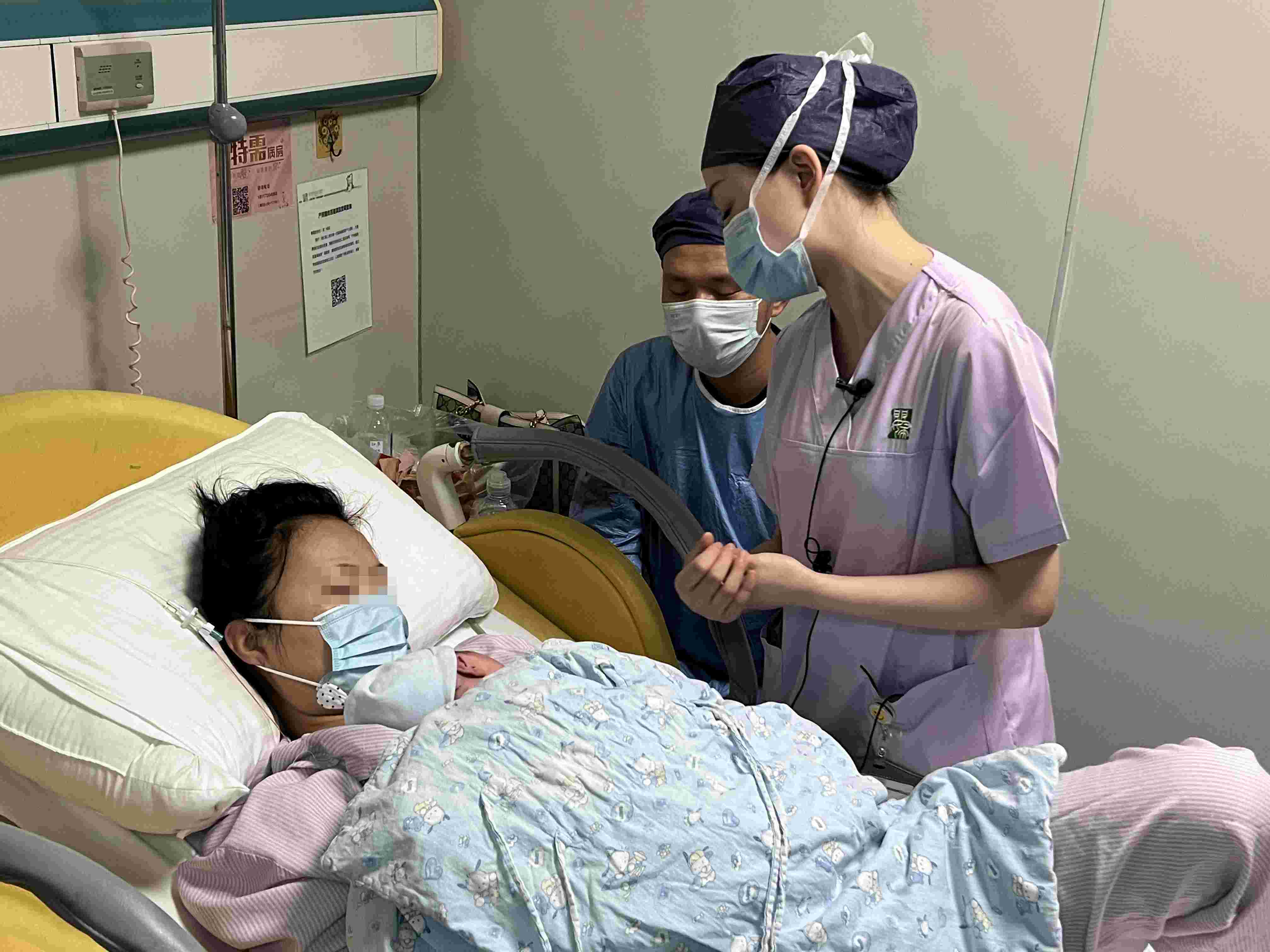 “吸口氣,再來,盡量不要發(fā)聲音,輕輕吐氣,放輕松……”助產(chǎn)士吳靜站在產(chǎn)床旁,為一名宮口全開的孕產(chǎn)婦加油打氣,迎接一個(gè)新生命的到來。